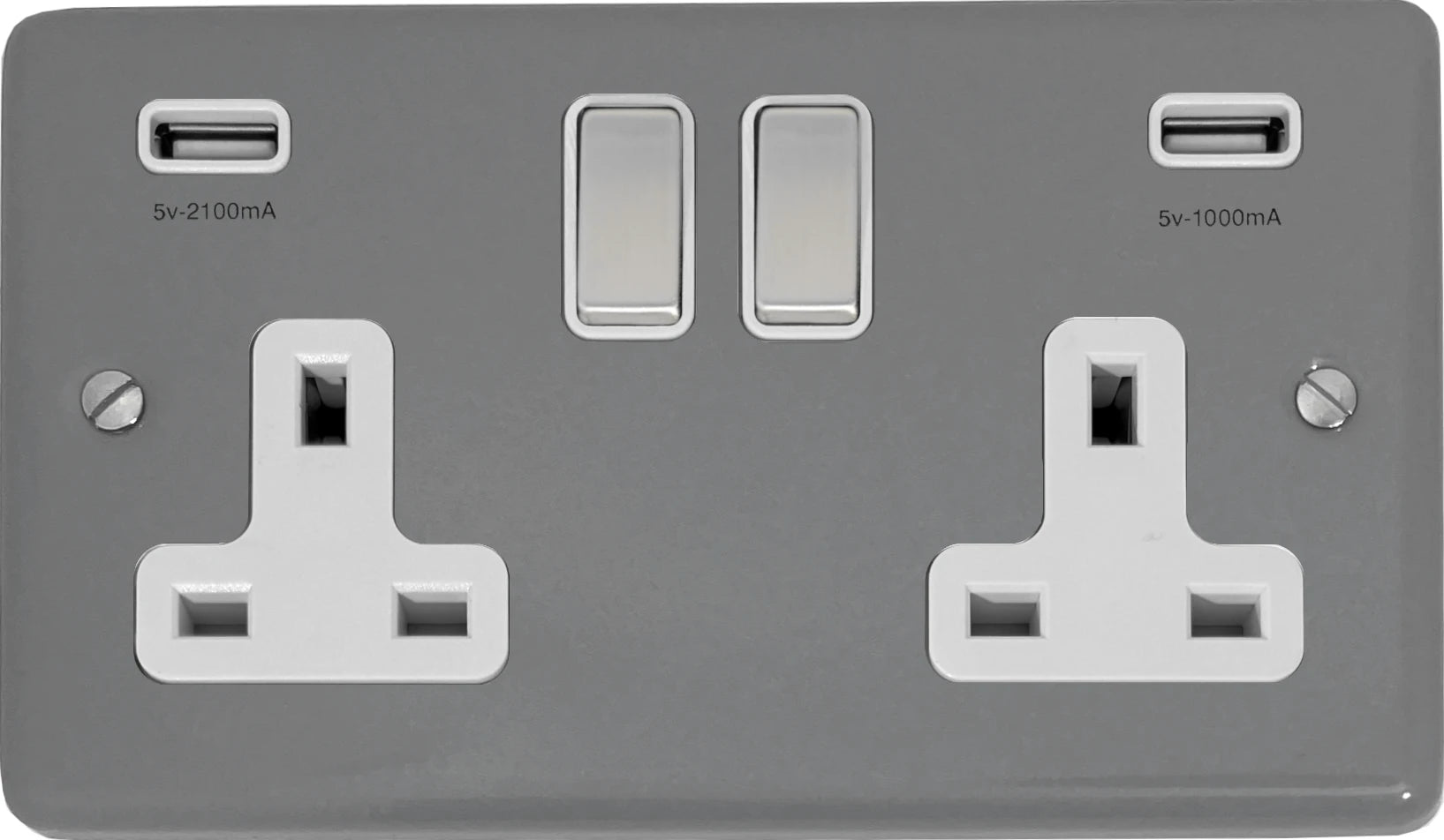 Contour Light Grey 2 Gang Socket C/W Usb Ports