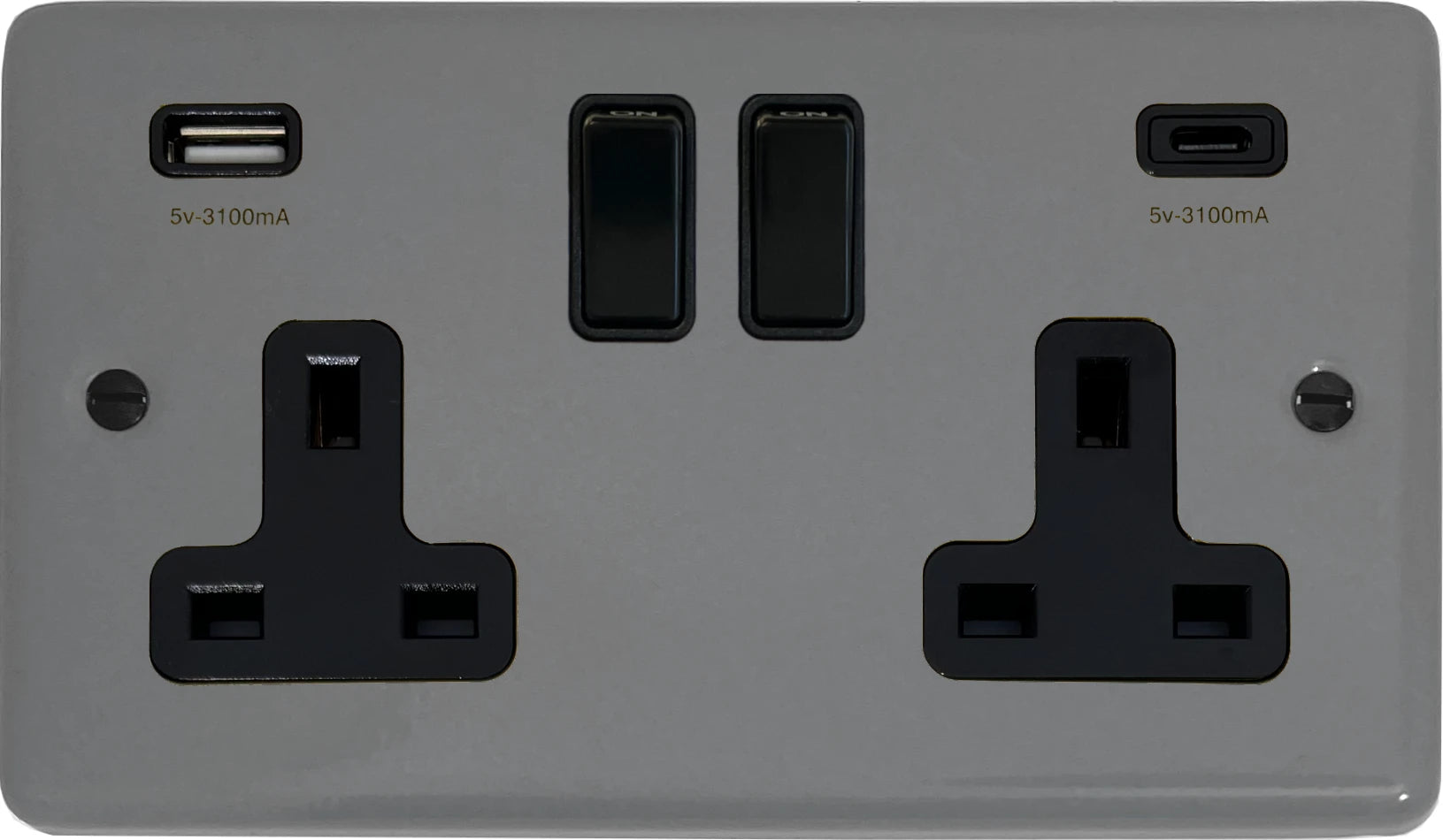 Contour Light Grey 2 Gang Socket with USBC