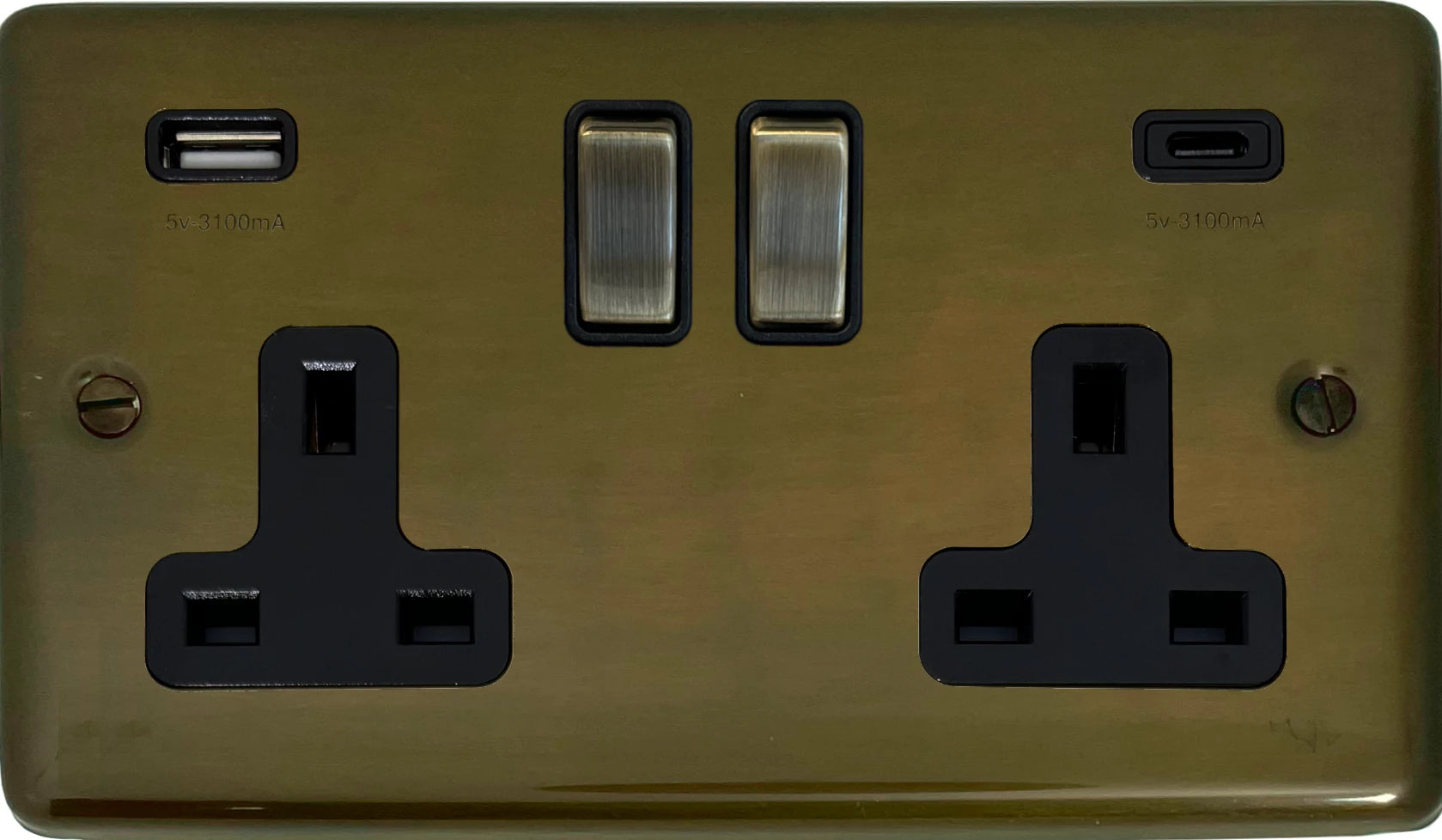 Contour Medium Bronze 2 Gang Socket C/W USBC