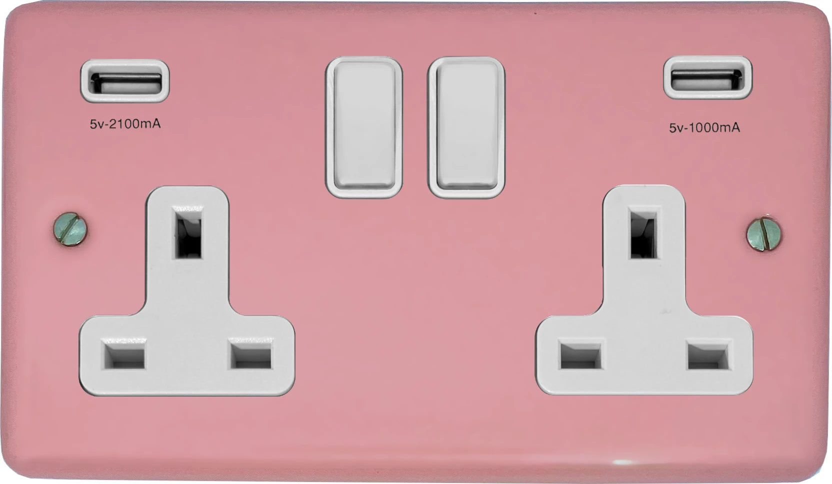 Contour Pink 2 Gang Socket C/W Usb Ports