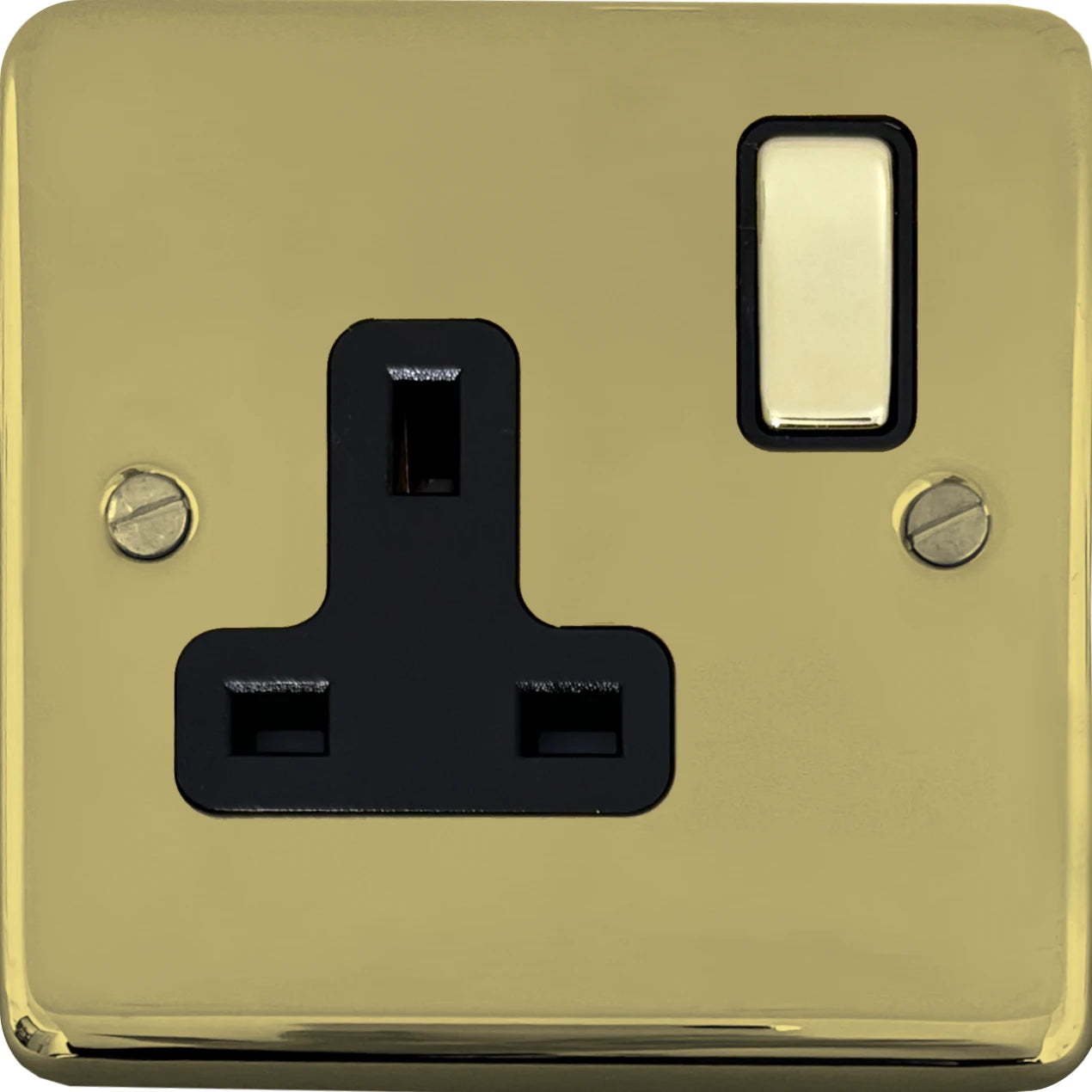 Contour Polished Brass 1 Gang Switch (Black Insert/ Brass Switch)