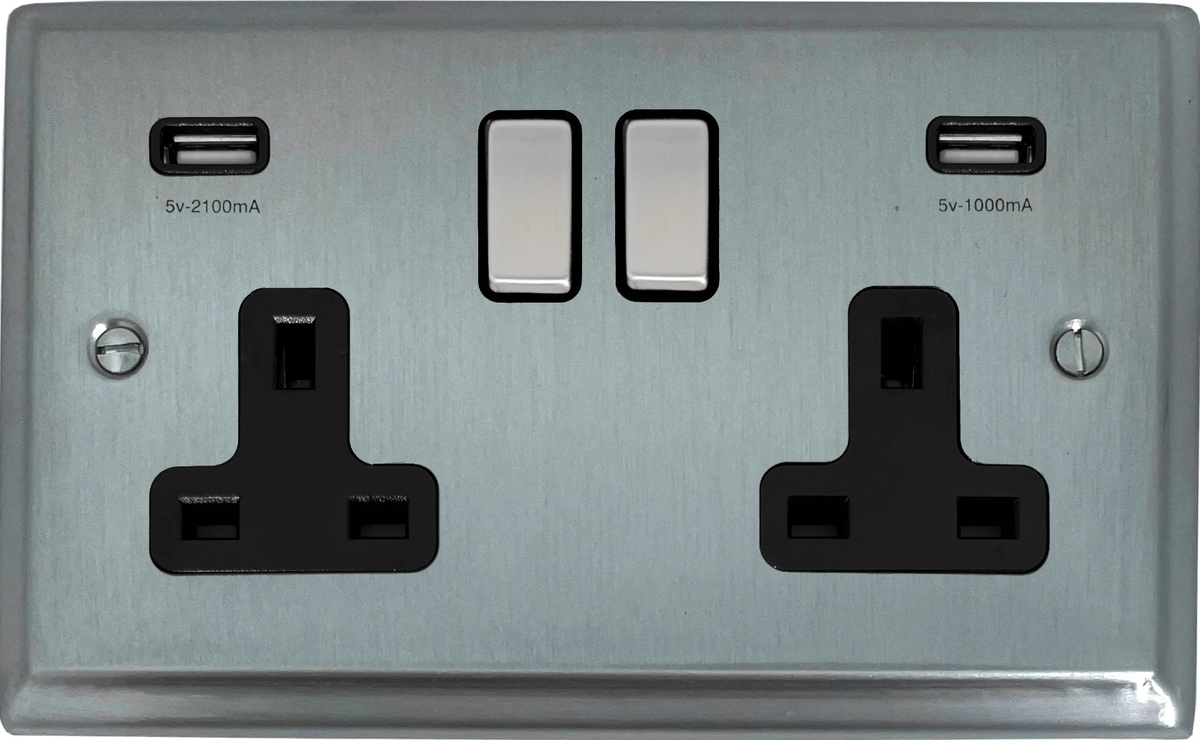 Deco Satin Chrome 2 Gang Socket C/W Usb Ports