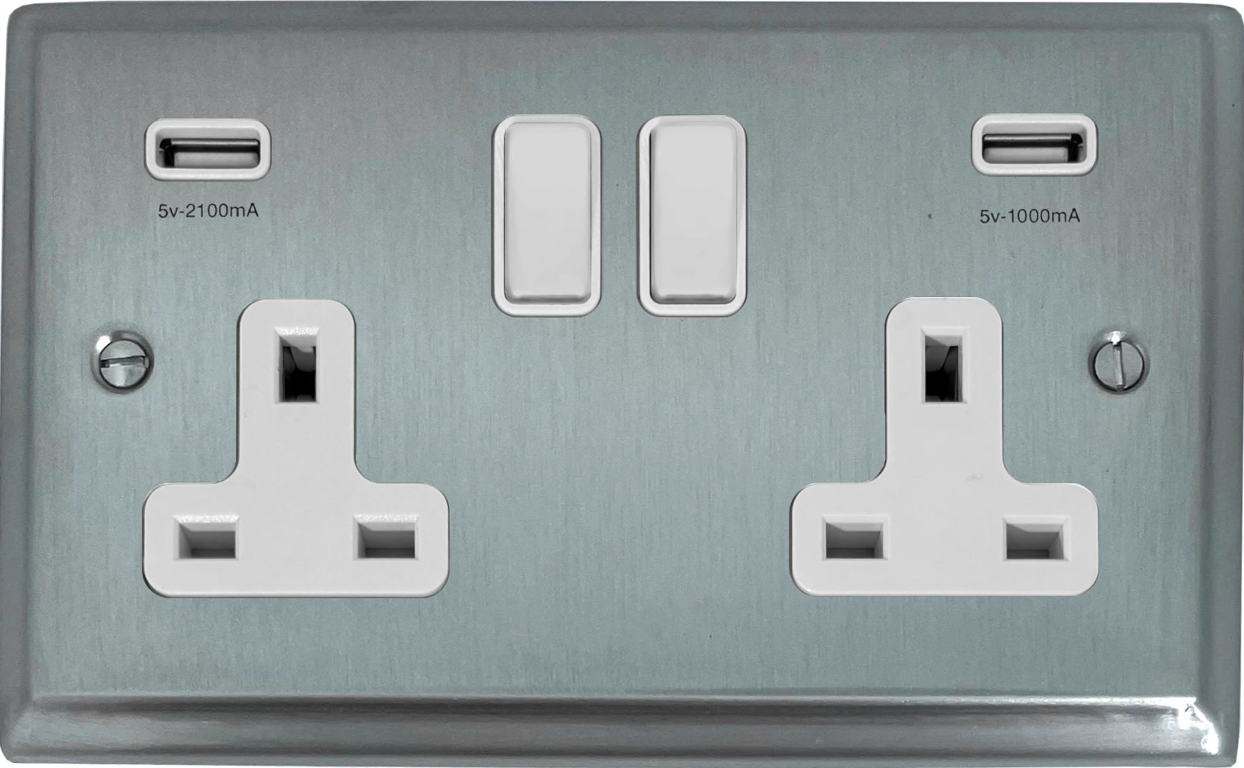 Deco Satin Chrome 2 Gang Socket C/W Usb Ports