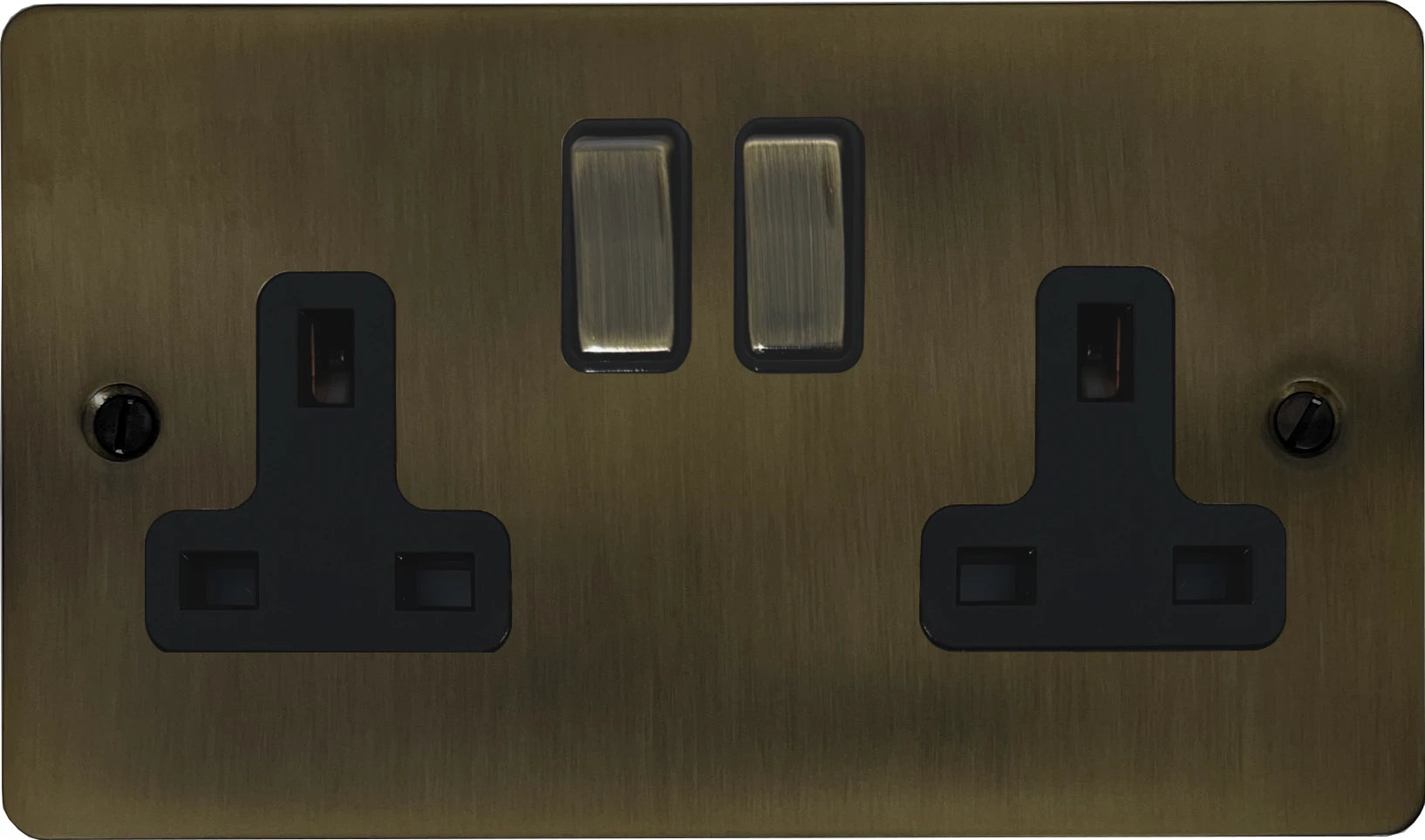 Flat Antique Brass 2 Gang Socket (Brass Switches)