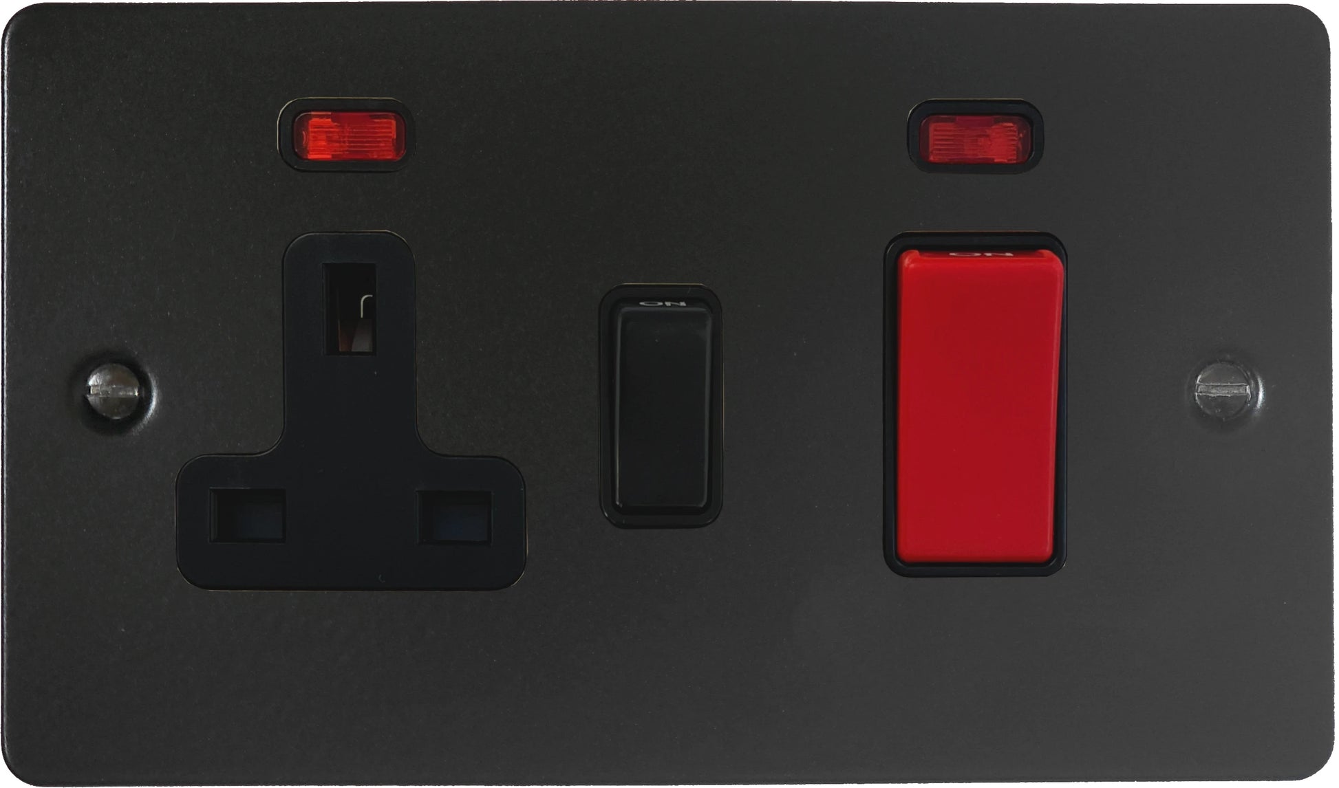 Flat Black 45 Amp Cooker Switch and Socket (Black Switch)