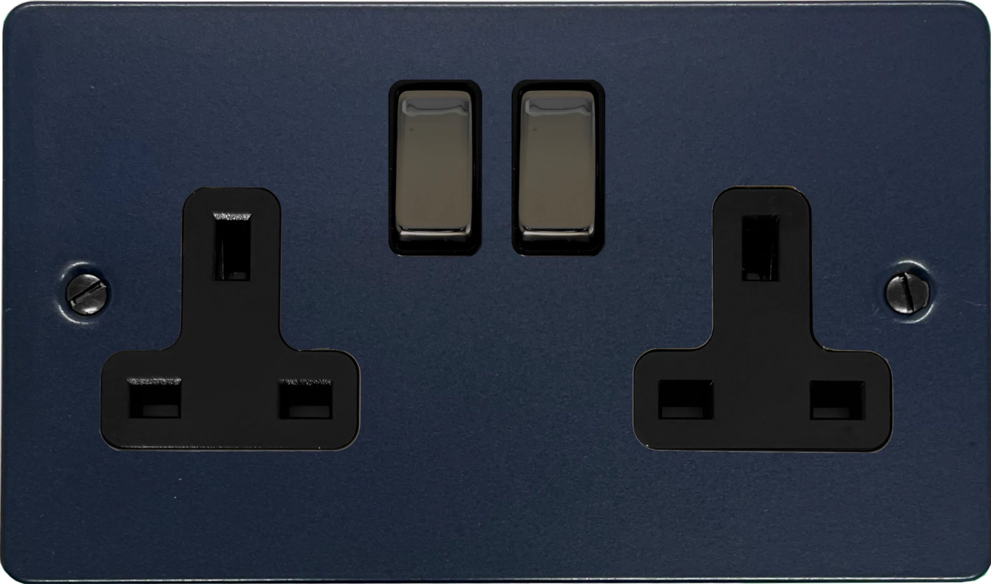 Flat Blue 2 Gang Socket (Black Nickel Switches/Black Inserts)