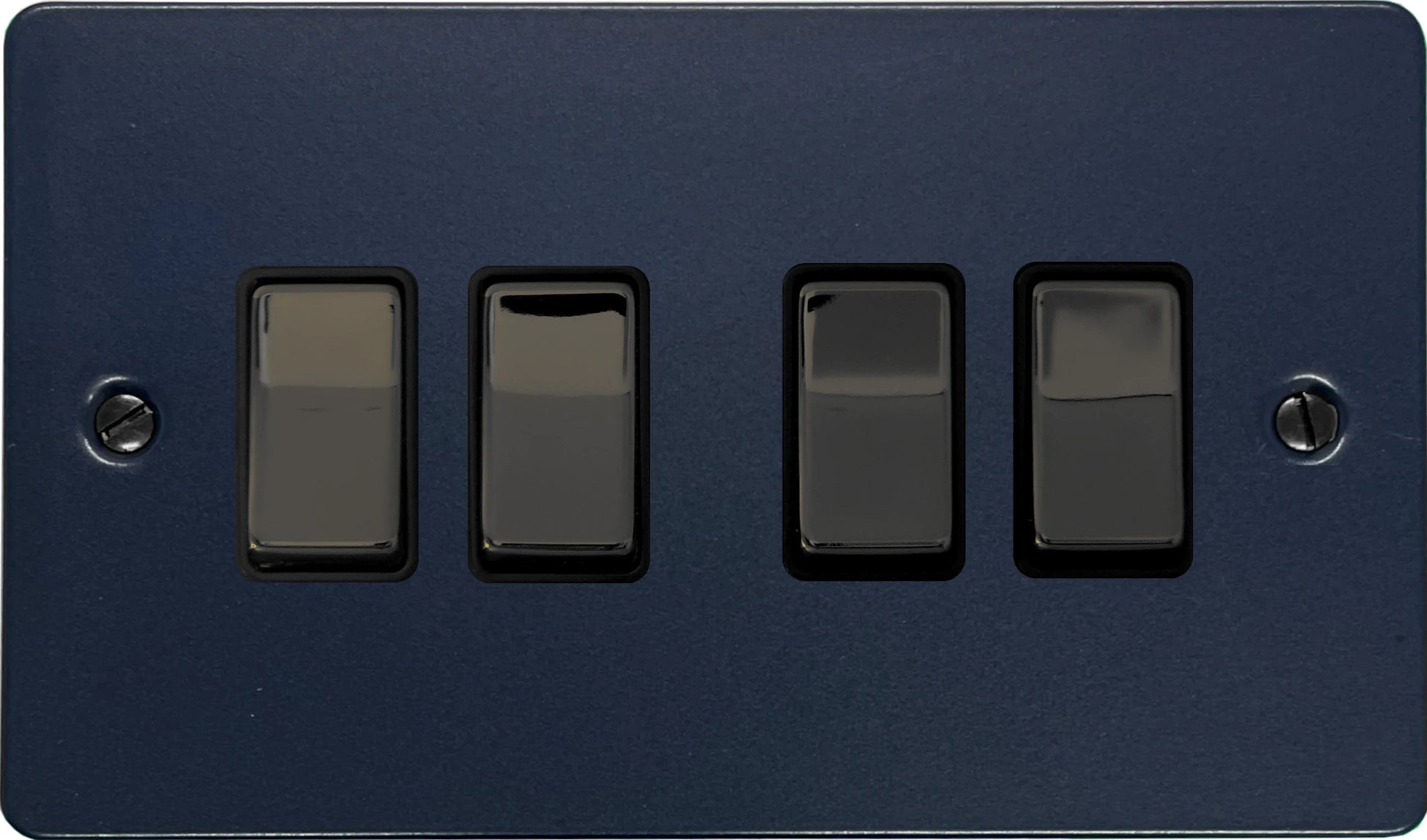 Flat Blue 4 Gang Switch (Black Nickel Switches/Black Inserts)