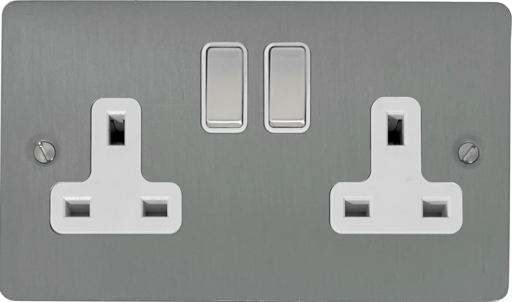 Flat Brushed Steel 2 Gang Socket