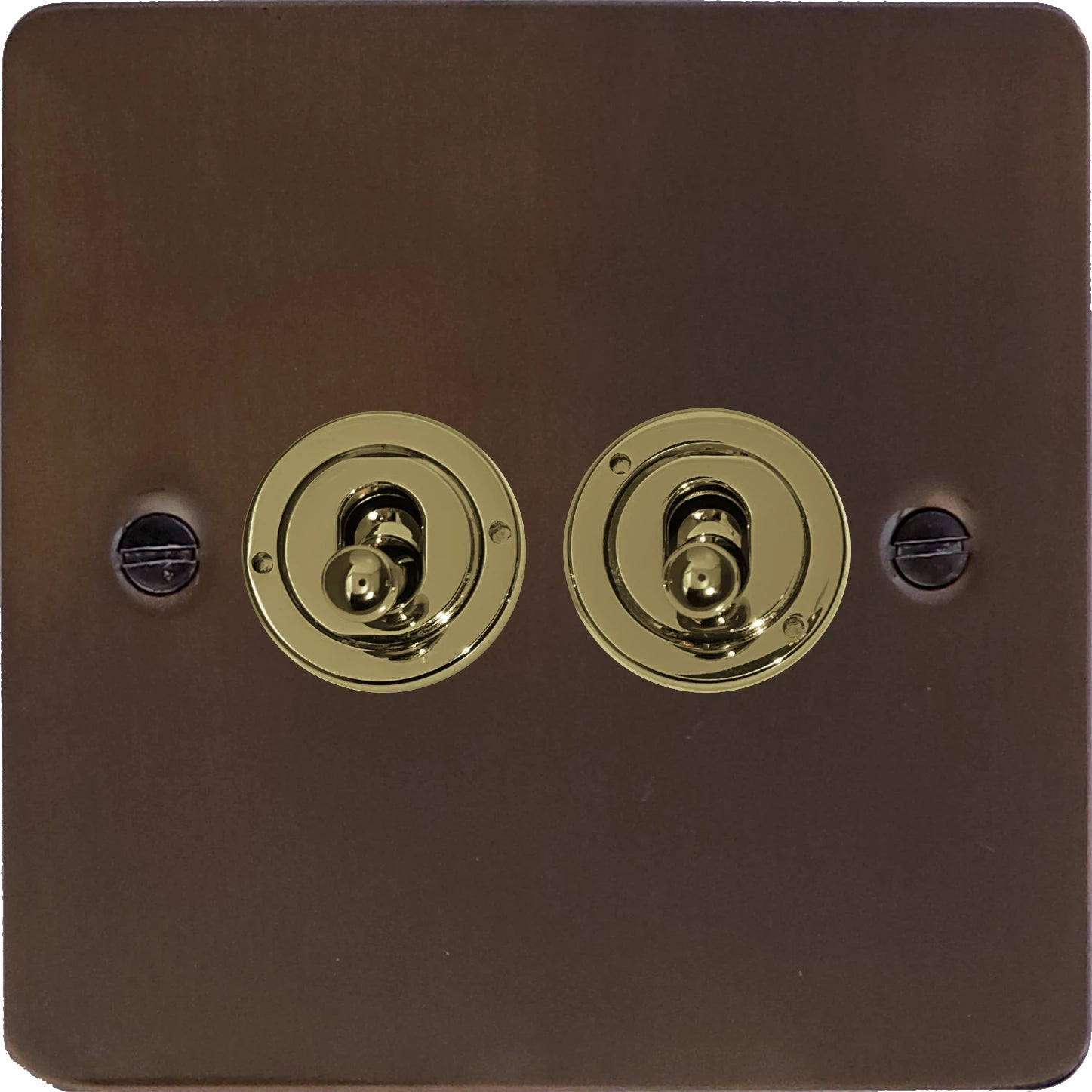 Flat Medium Bronze 2 Gang 2 Way Toggle