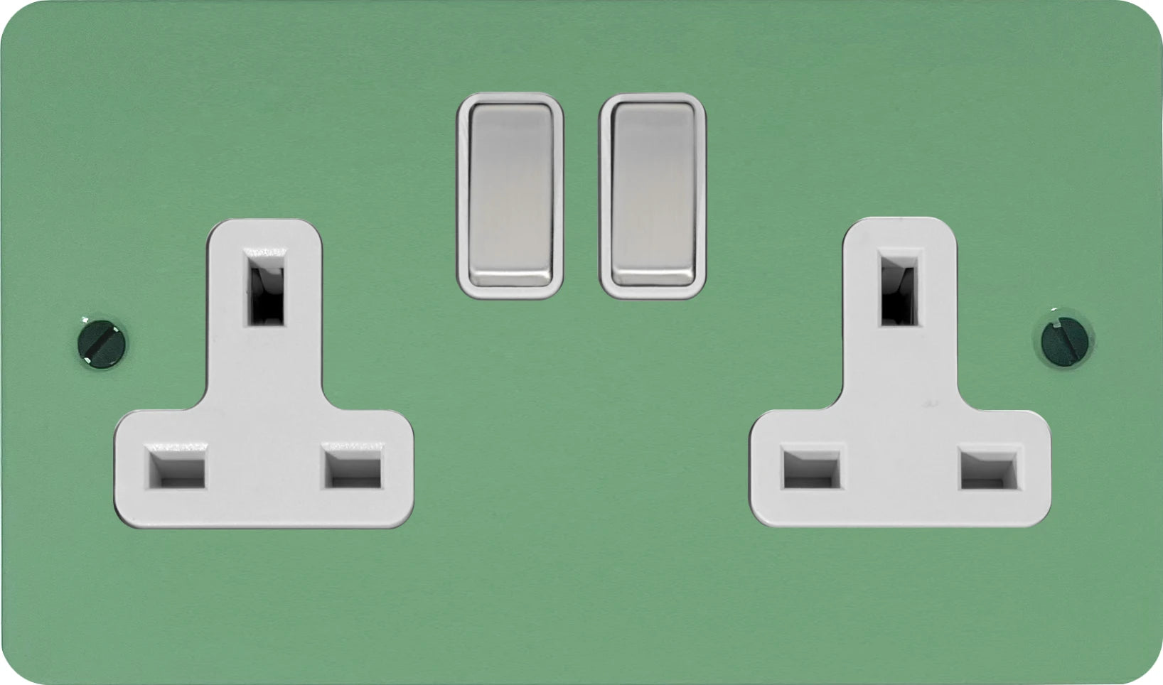 Flat Sage Green 2 Gang Socket (Satin Chrome Switches/White Inserts)