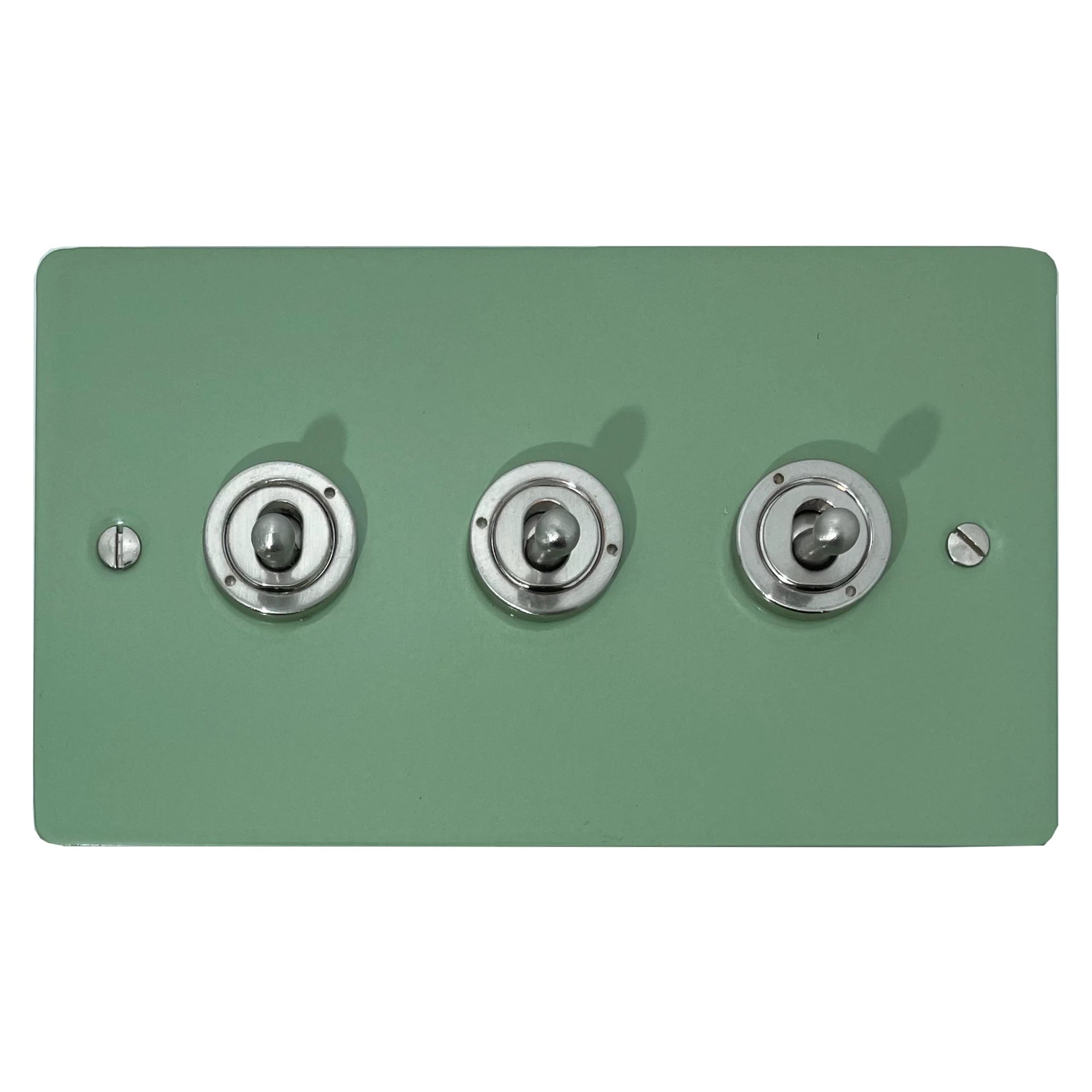 Flat Sage Green 3 Gang Grid Toggle Plate