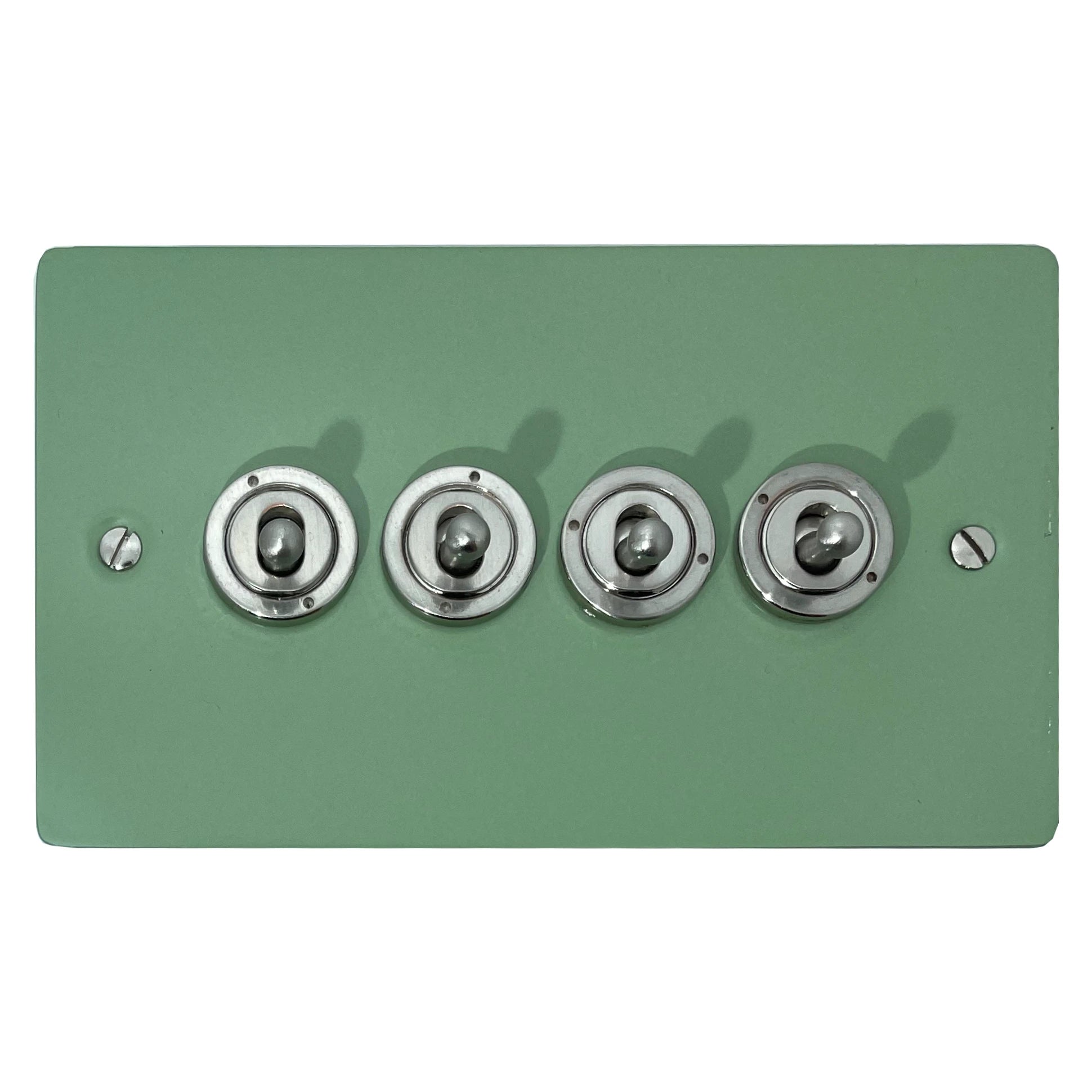 Flat Sage Green 4 Gang Grid Toggle Plate