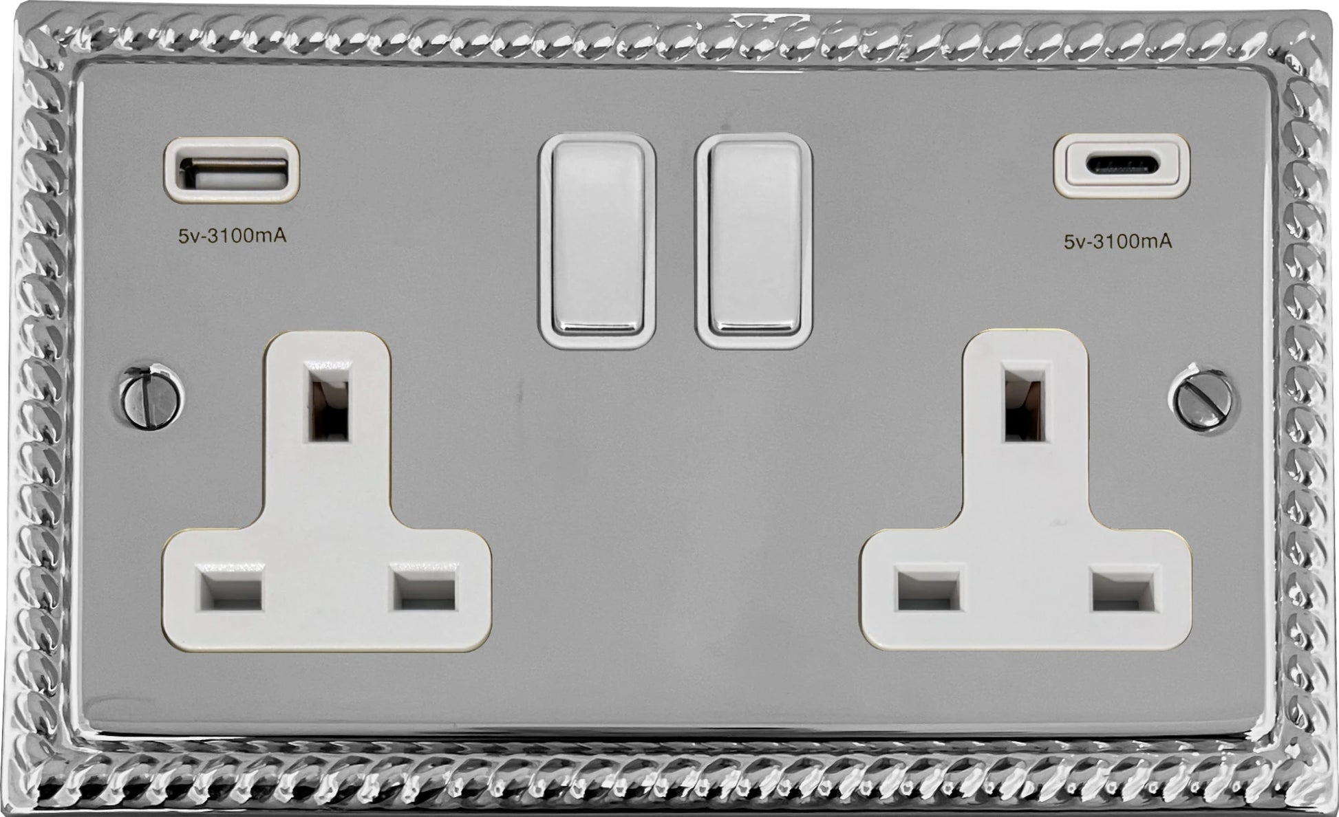 Monarch Polished Chrome 2 Gang Socket C/W USBC Ports