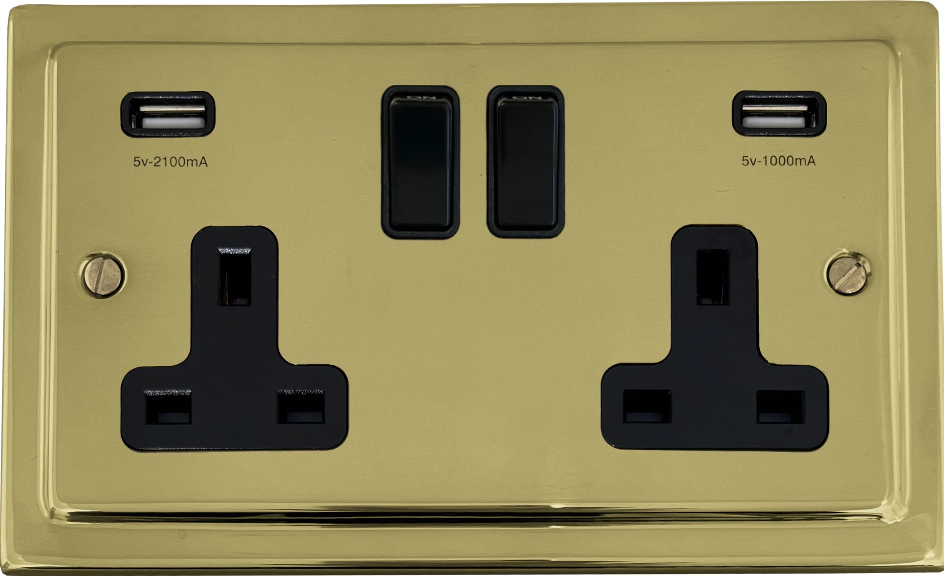 Trimline Polished Brass 2 Gang Socket with USB