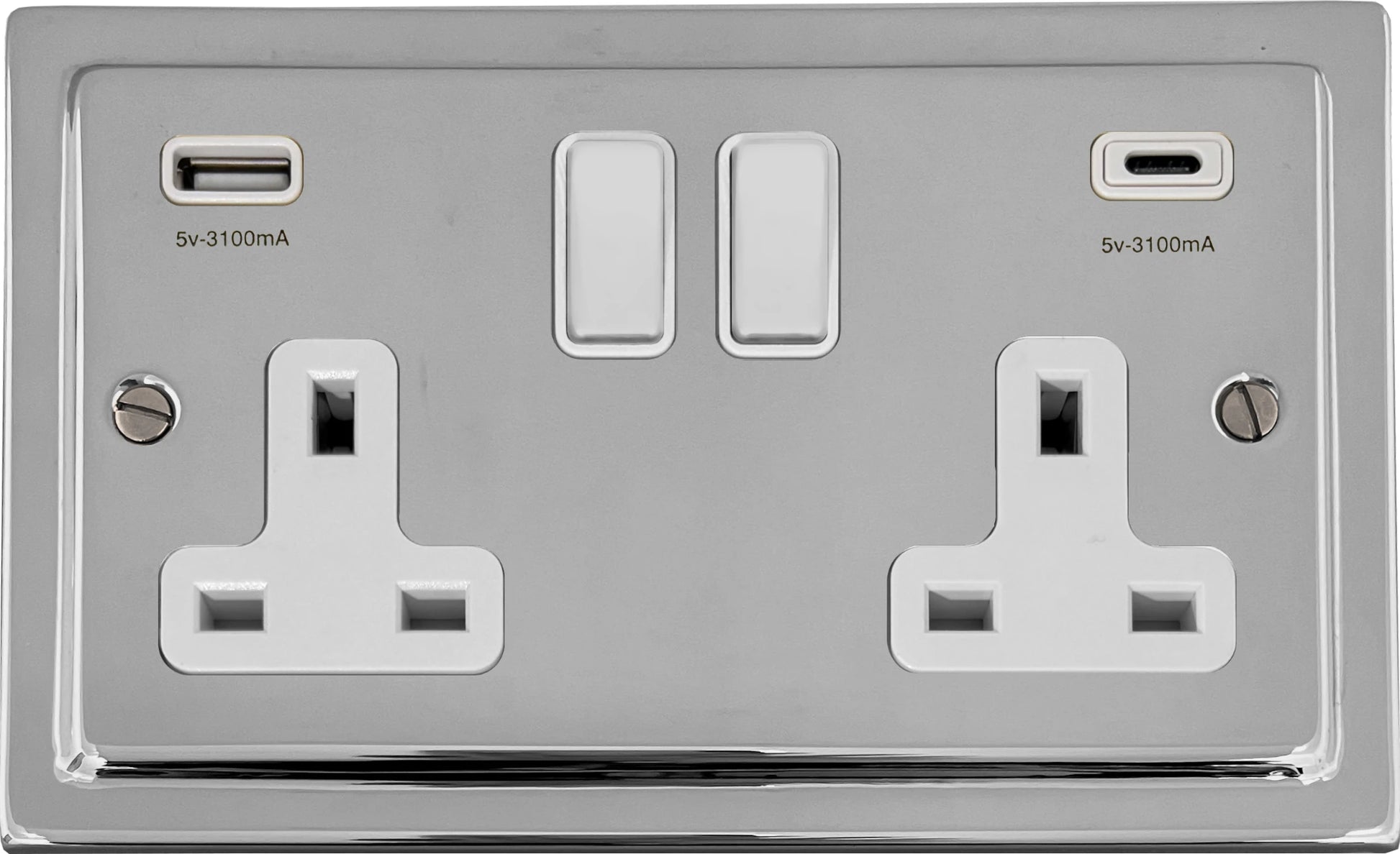 Trimline Polished Chrome 2 Gang Socket C/W USBC Ports